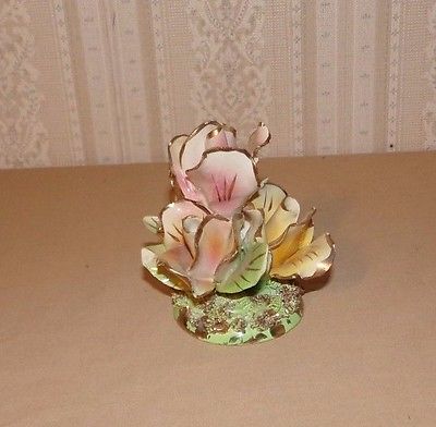 Title (ebay affiliate link): Vtg CAPODIMONTE Italy T.M.J # 7501 Crown Pottery Art Flower Rose Porcelain