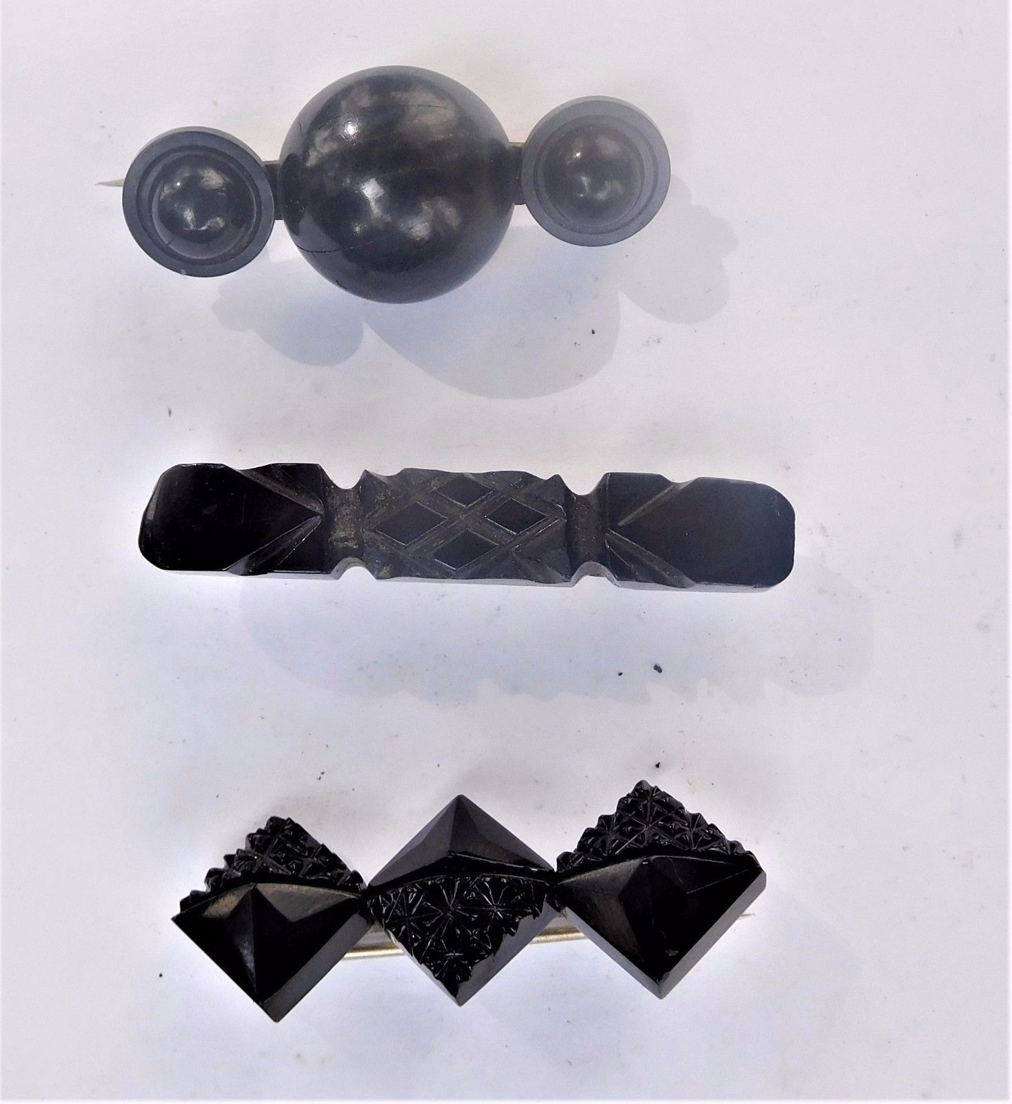 NO RESERVE c1890 THREE Victorian Whitby Jet Brooch Vintage Antique