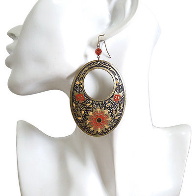 Title (ebay affiliate link): Vintage Womens Antique Color Flowers Oval Cut Out Ring Drop Dangle Hook Earrings