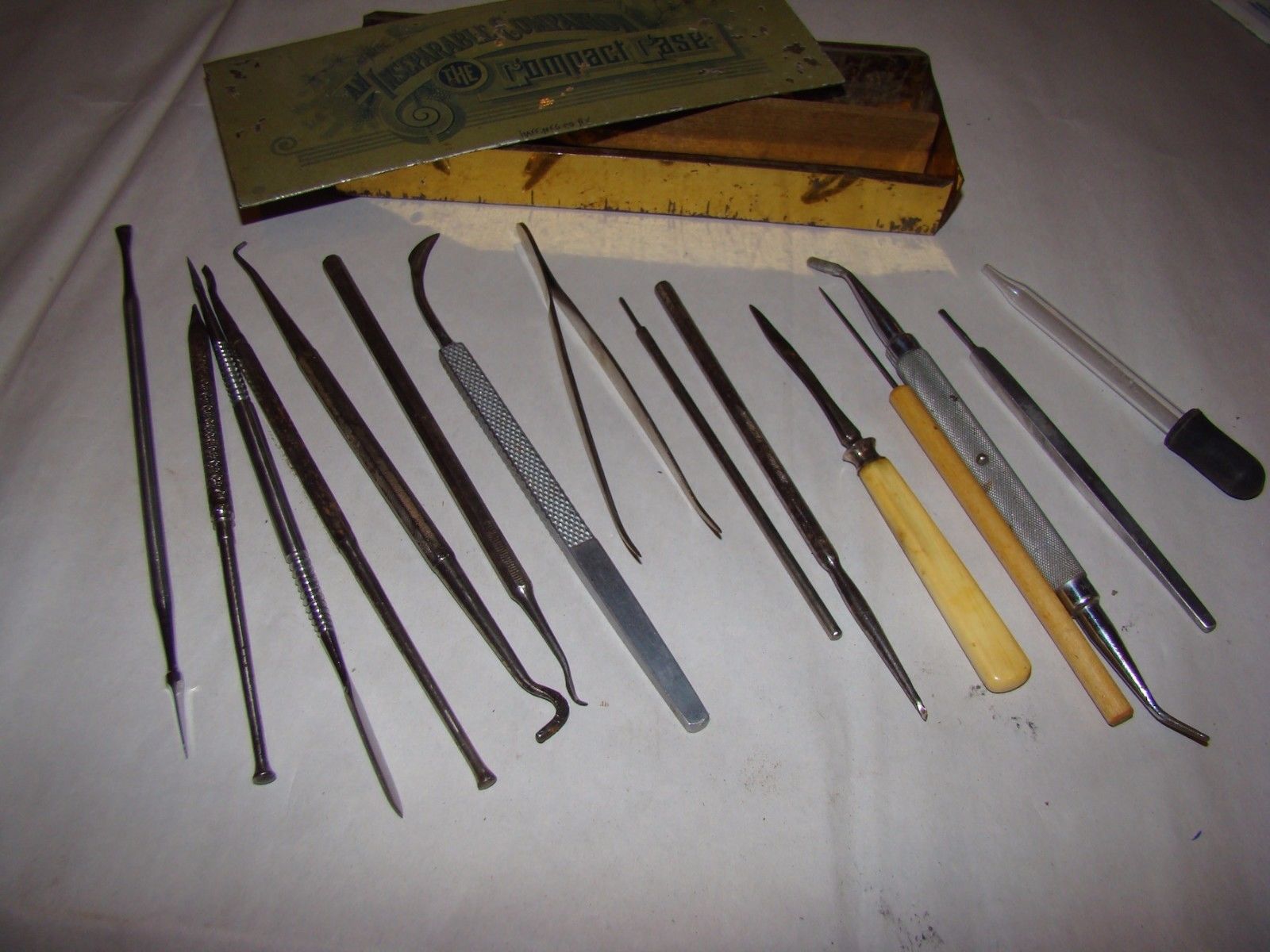 Title (ebay affiliate link): antique tin litho case full old medical / dental tools !!