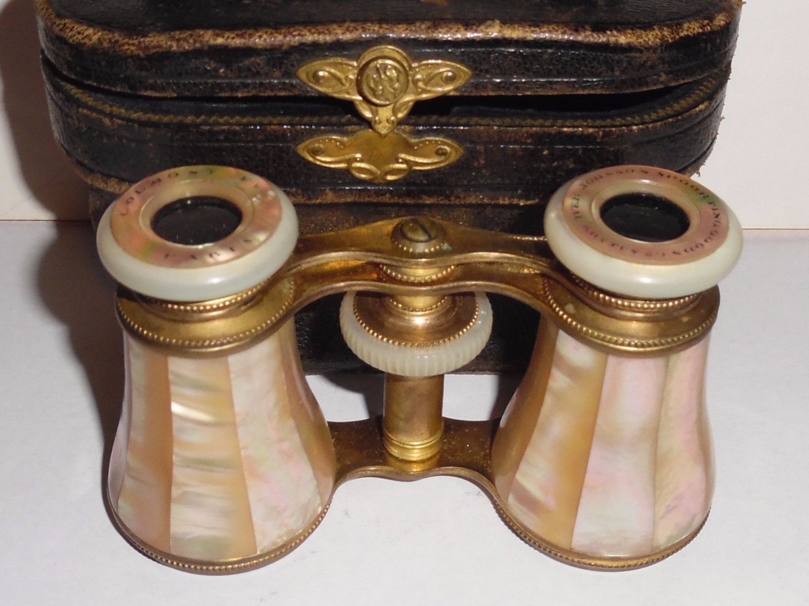 ANTIQUE IVER JOHNSON SPORTING GOODS CO. BRASS & MOTHER OF PEARL OPERA GLASSES