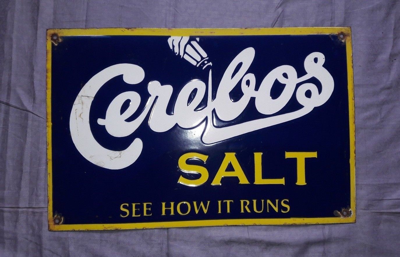 Porcelain CERELOS SALT Sign SIZE 18" X 12" INCHES