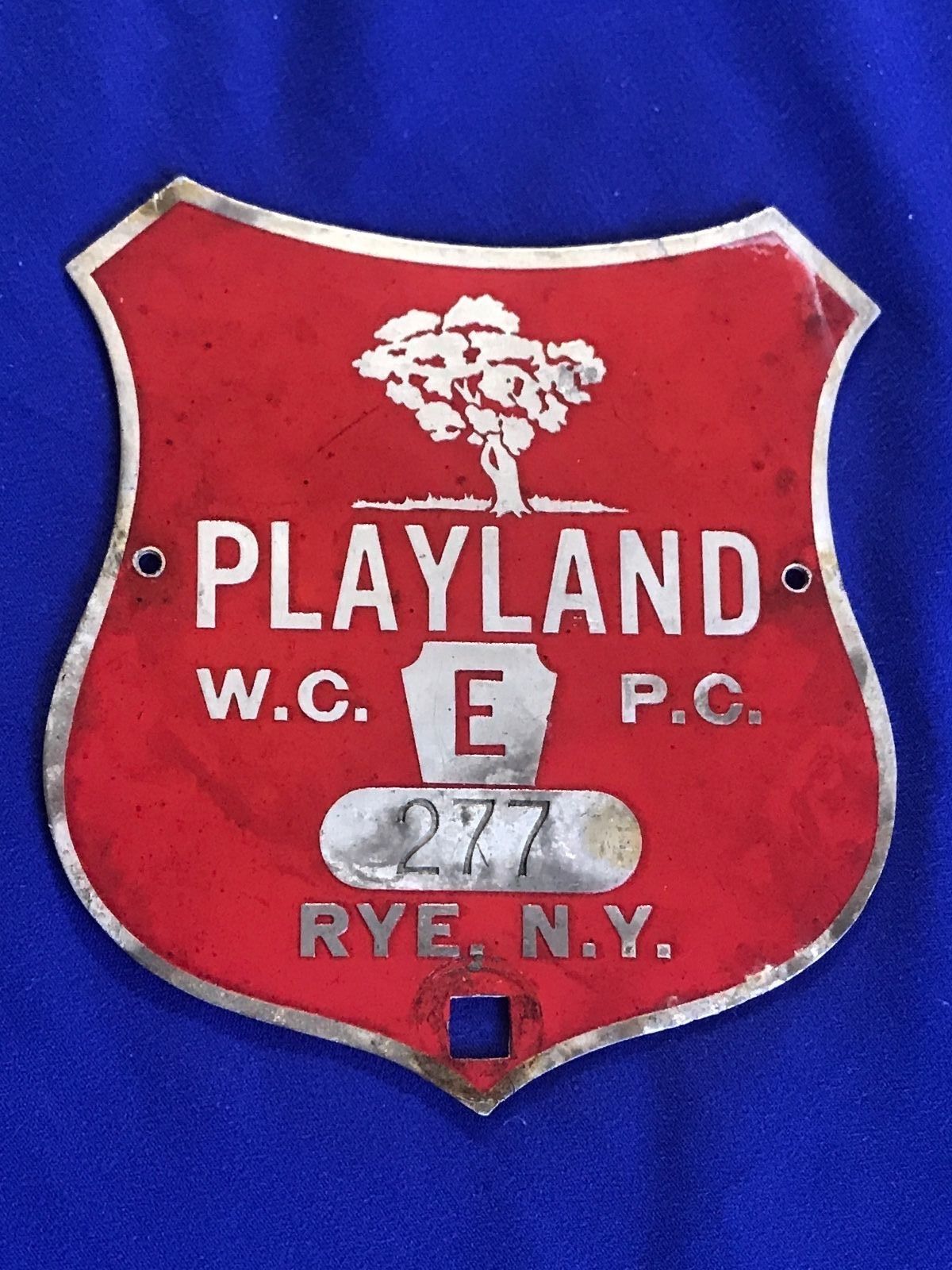1930s Vintage PLAYLAND AMUSEMENT PARK ~ RYE BEACH, NY Metal Sign Plate Topper