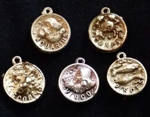 Title (ebay affiliate link): 5 Horoscope Astrological Plastic Charms from gumball machine, 1960s or 1970s