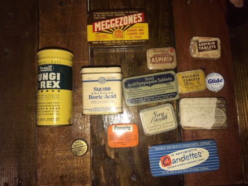 Title (ebay affiliate link): Lot of 13 Vintage Antique Assorted Tins cans, Medicine Aspirin Boric Acid