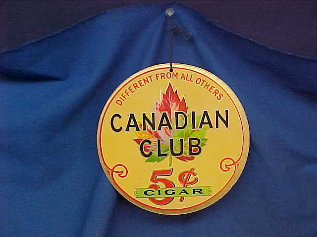 Vintage 1930s CANADIAN CLUB CIGARS Country Store HANGING String Tag SIGN