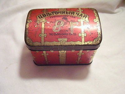 VINTAGE Est 1913 Russian Red Tin Tea Box Zvetouchny RARE Collectible