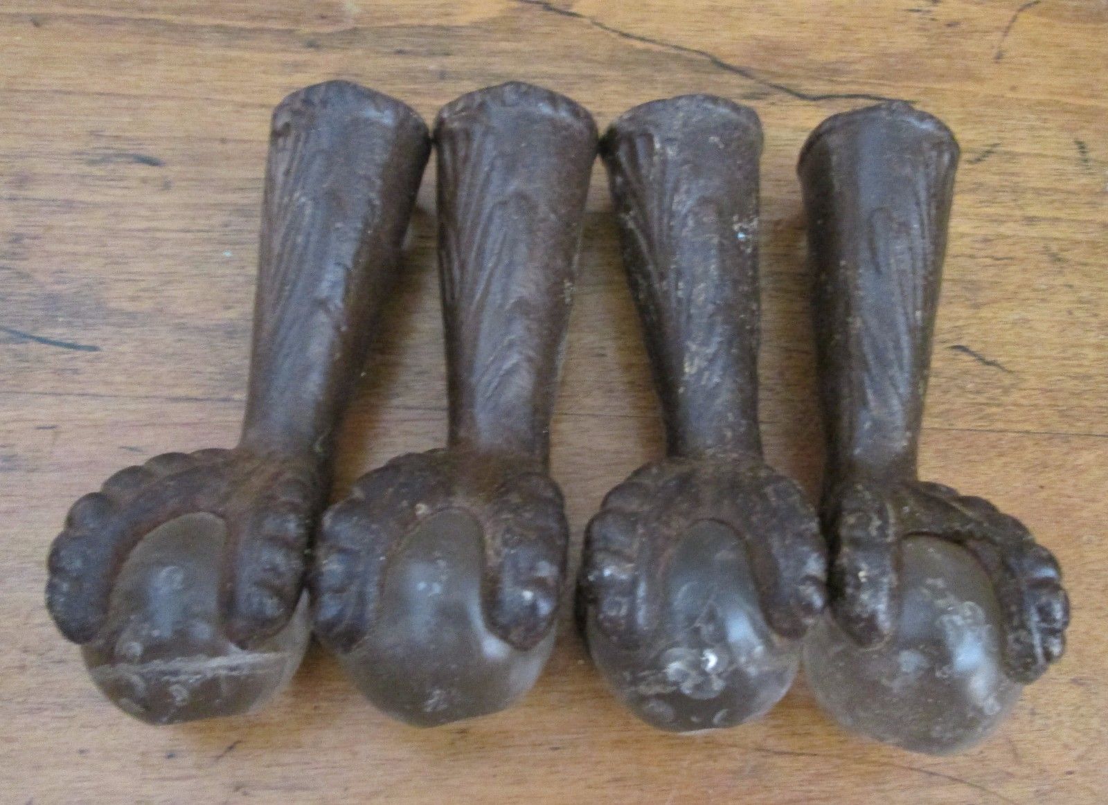 Antique Vintage Set 4 Old Claw Glass & Iron Ball Feet Piano Stool Part Repurpose