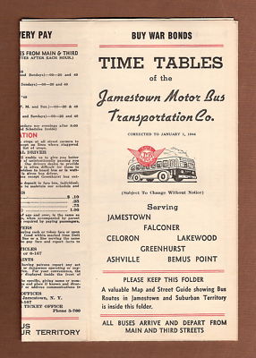 1944 JAMESTOWN MOTOR BUS TRANS. CO. T. TABLE & MAP