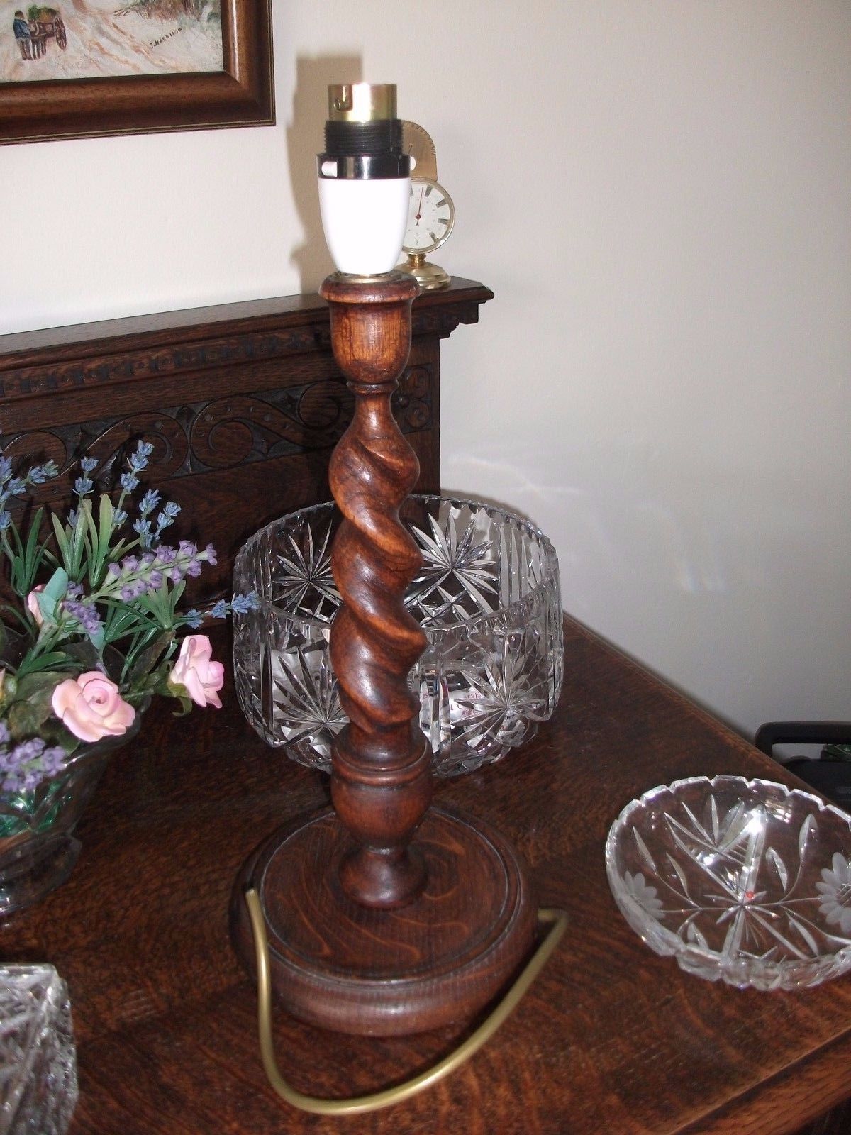 Oak Barley Sugar Twist Table Lamp.