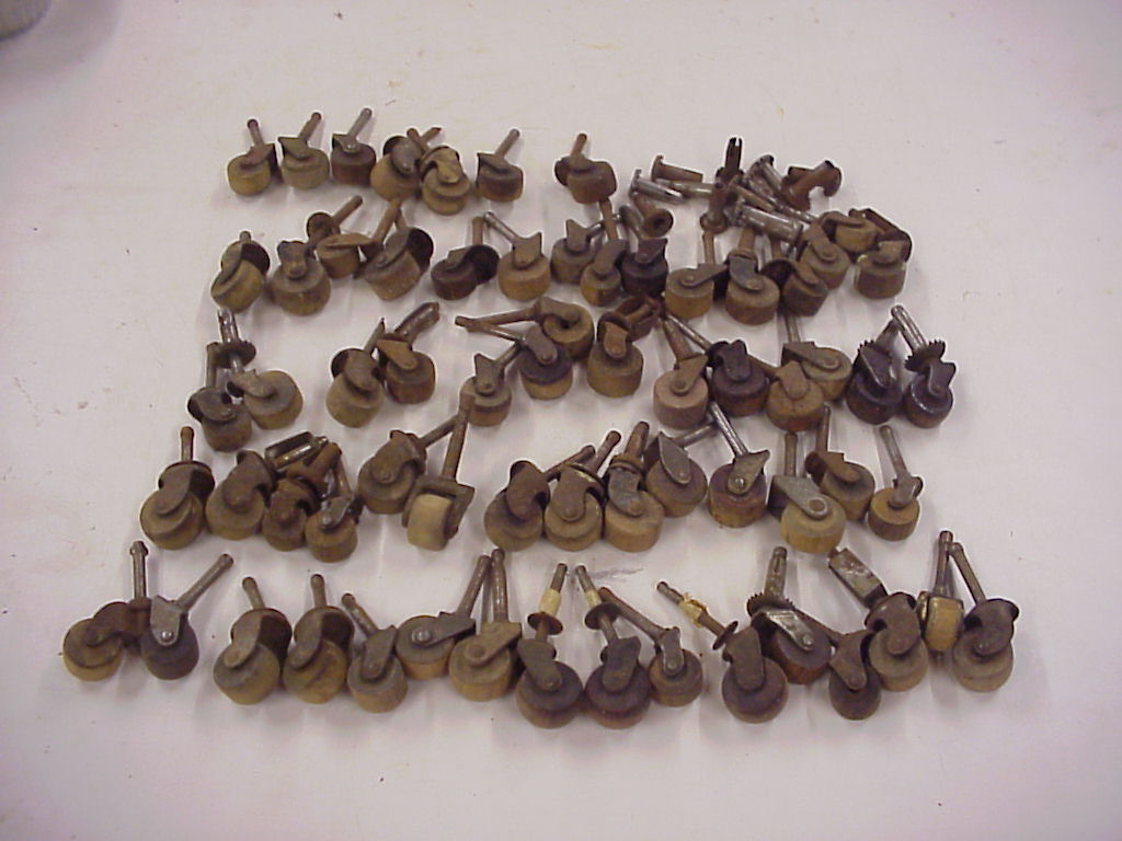 Lot of 60+ Antique Wood Furniture Casters Wooden wheels