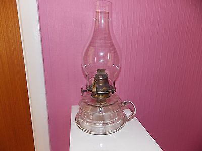 VERY OLD ENGLISH MADE CLEAR GLASS FINGER HOLD OIL LAMP