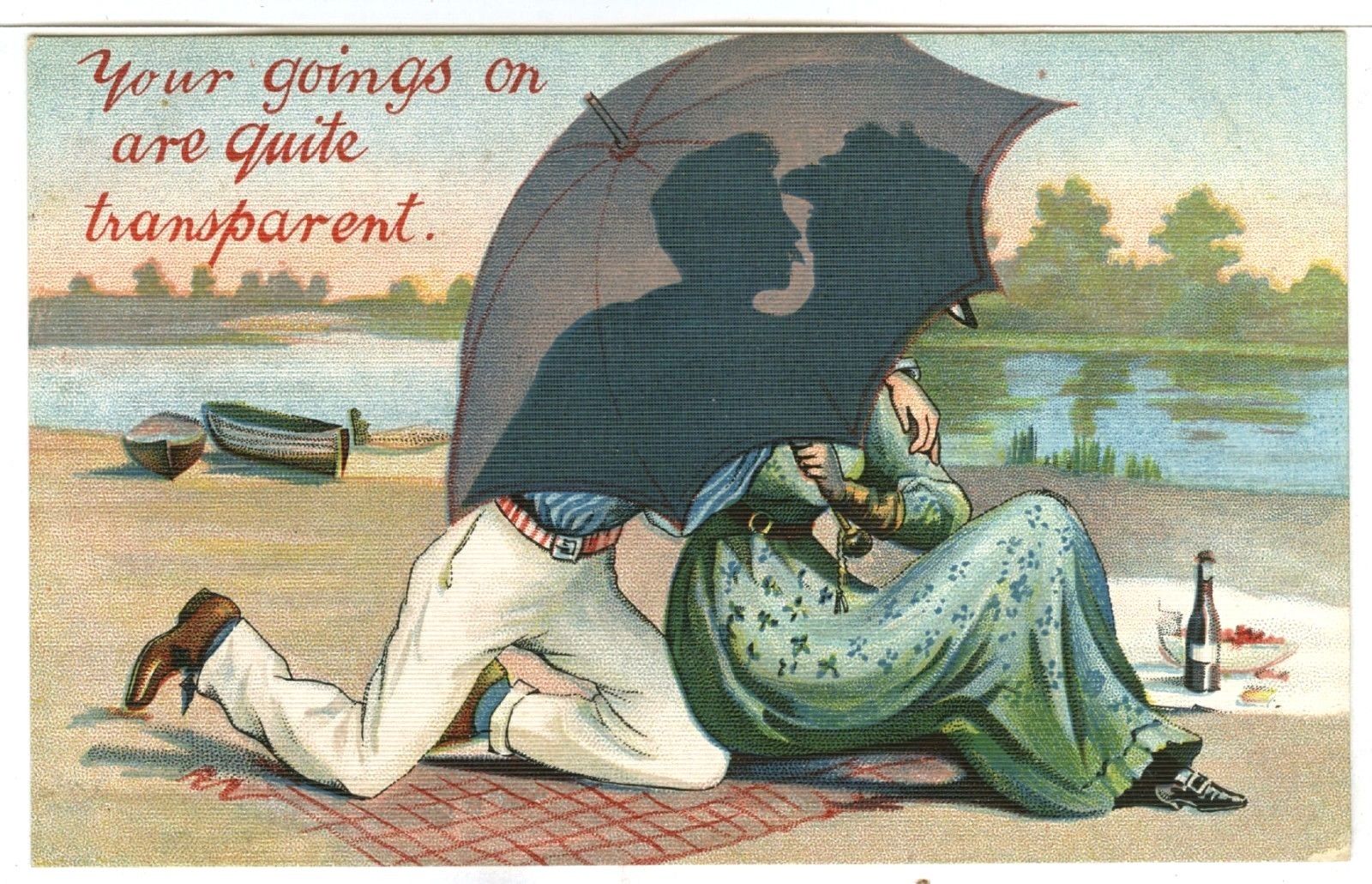 Title (ebay affiliate link): Vintage, Textured, "Your goings on are quite transparent.", Lovers Kissing...