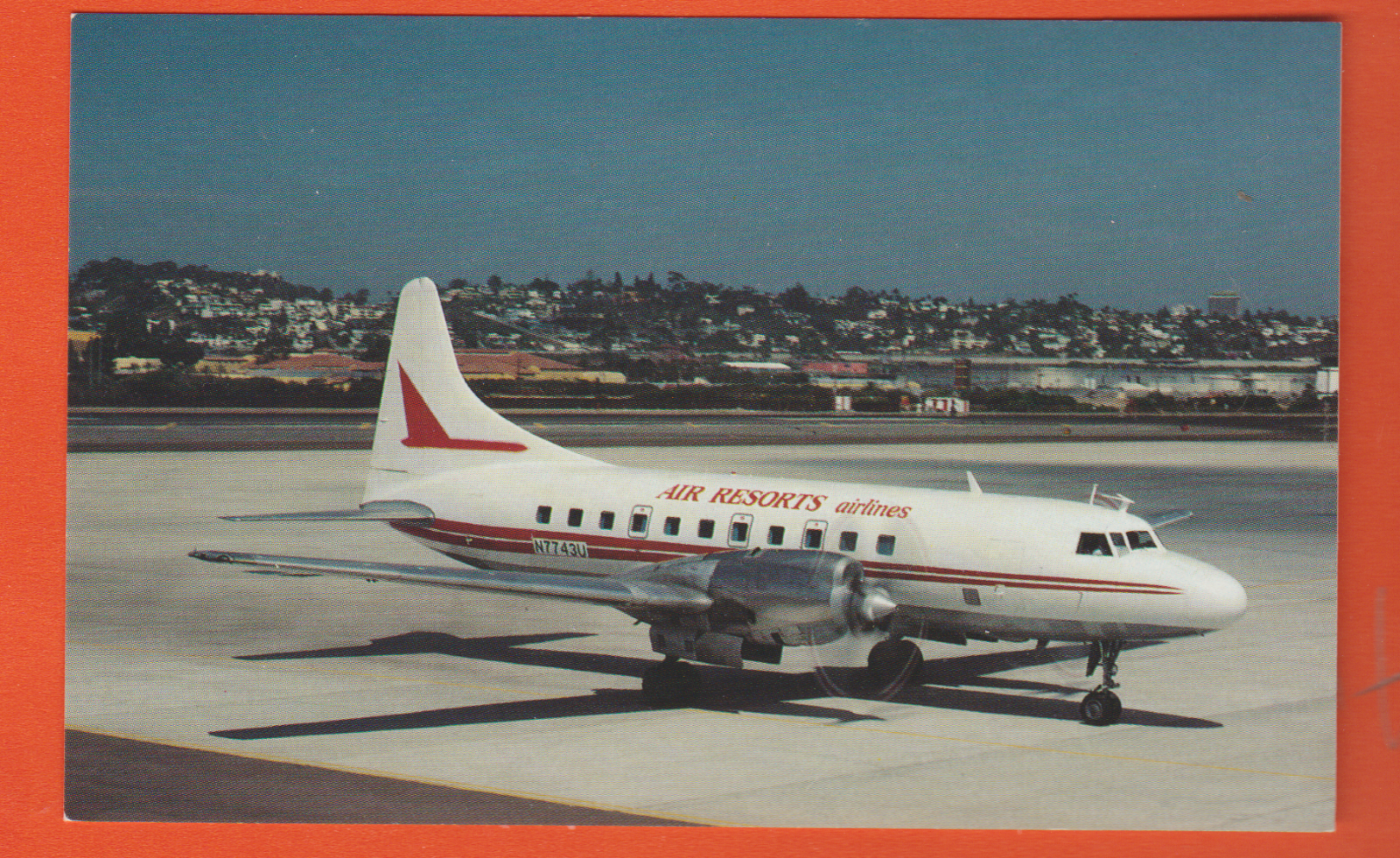 Title (ebay affiliate link): Air Resorts Airlines/ Convair CV-580/ chrome postcard