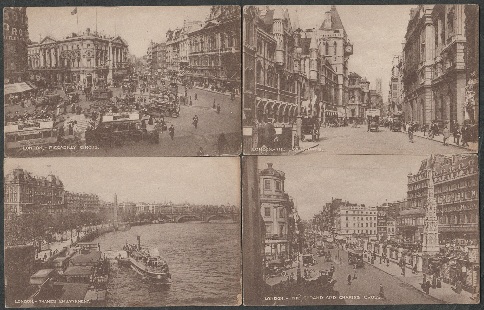 e249) 4 POSTCARDS OF LONDON, SENT TO MABEL FROM ROBERT POOLE, BELGIUM 1918