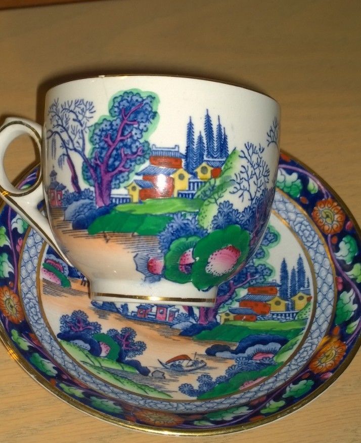Booths Ming Multicolored Antique Tea Cup and Saucer Antique