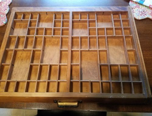 Title (ebay affiliate link): VINTAGE LUDLOW WOODEN PRINTERS JOB TRAY DRAWER BRASS HANDLE LOVELY REFINISHED #2
