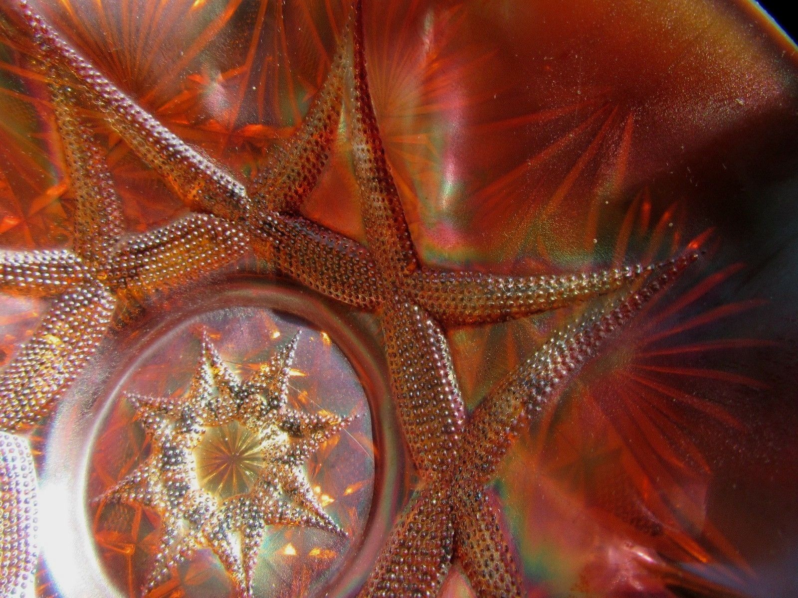 Antique Dugan Glass Carnival Glass Ski Star Peach Opalescent Marigold 11" Bowl