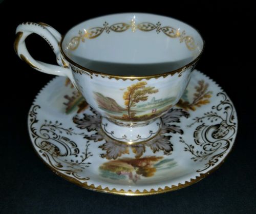 Davenport Longport Staffordshire Cup and Saucer - 3 Scene