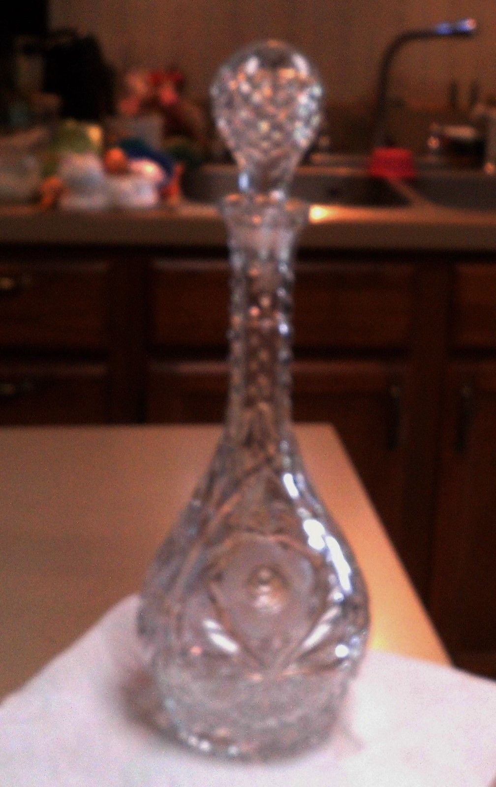 Title (ebay affiliate link): VINTAGE CUT CRYSTAL / PRESSED GLASS DECANTER WITH GLASS STOPPER 15" TALL