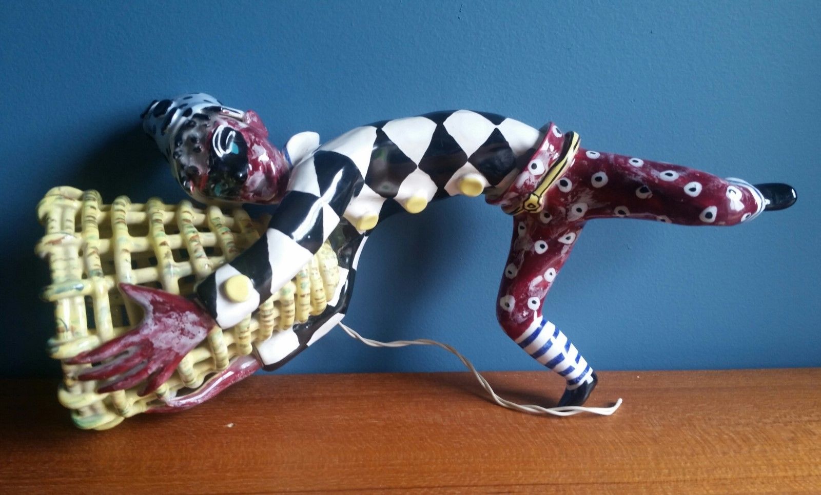 Title (ebay affiliate link): Otello Rosa Harlequin San Polo Italian Venetian Pottery Jester Lamp Light Sconce