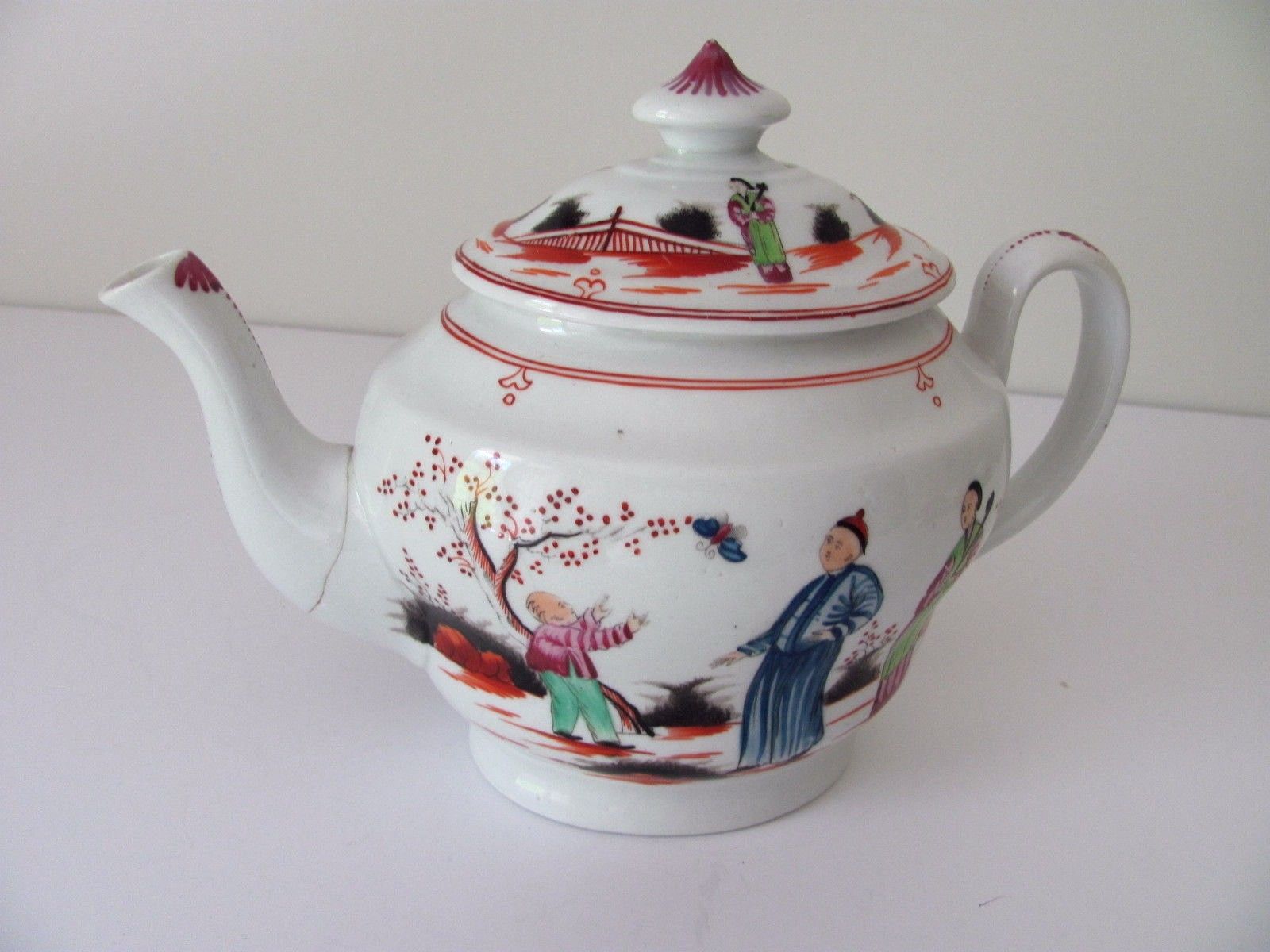 Antique England Teapot Hand painted Chinoiserie as is