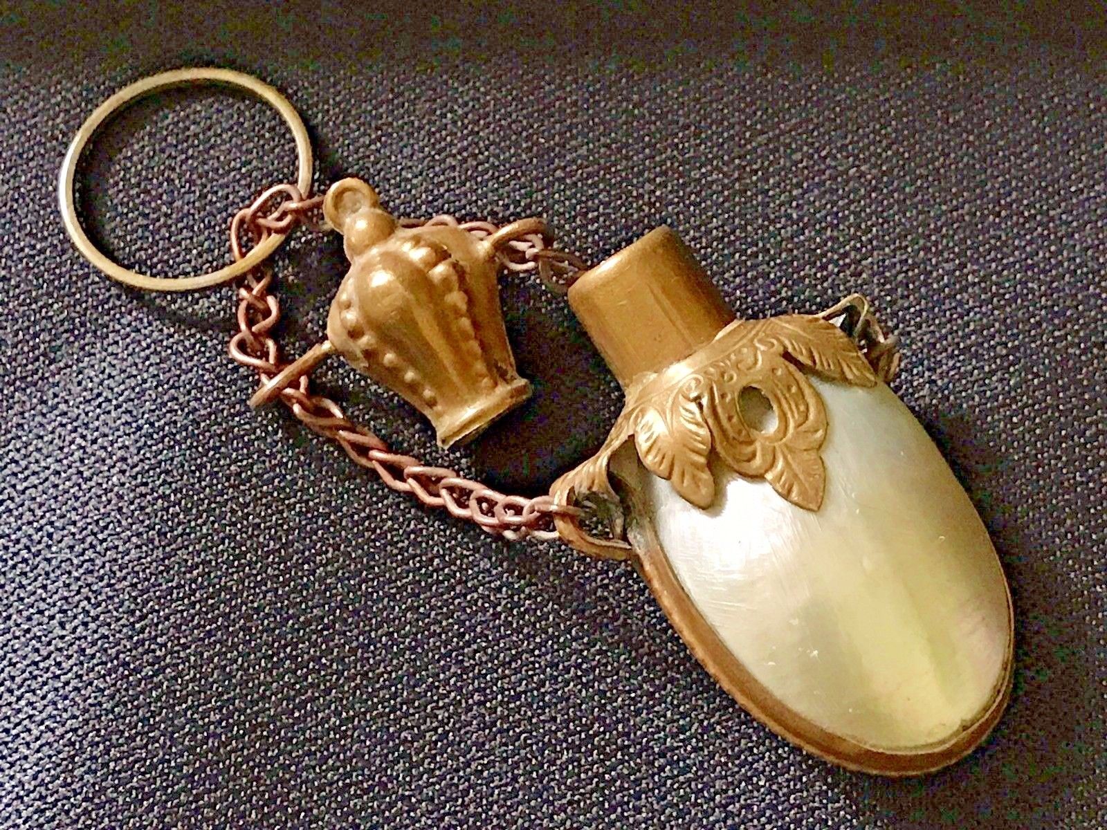 Title (ebay affiliate link): Perfume Scent Snuff Bottle French Chatelaine Mother of Pearl & Brass Mount