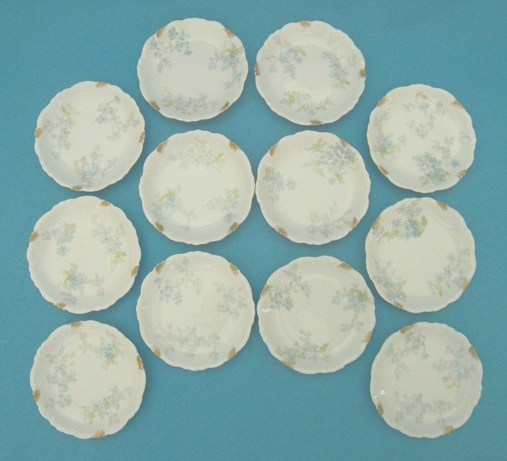 C. Ahrenfeldt Limoges France Set of 12 Butter Pats BLUE/GRAY/GREEN/GOLD on WHITE
