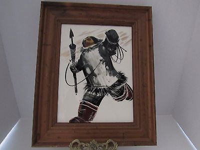 Title (ebay affiliate link): MATTHEW ADAMS Alaska Spear Hunter Framed Painted Ceramic Tile Mid 20th Century