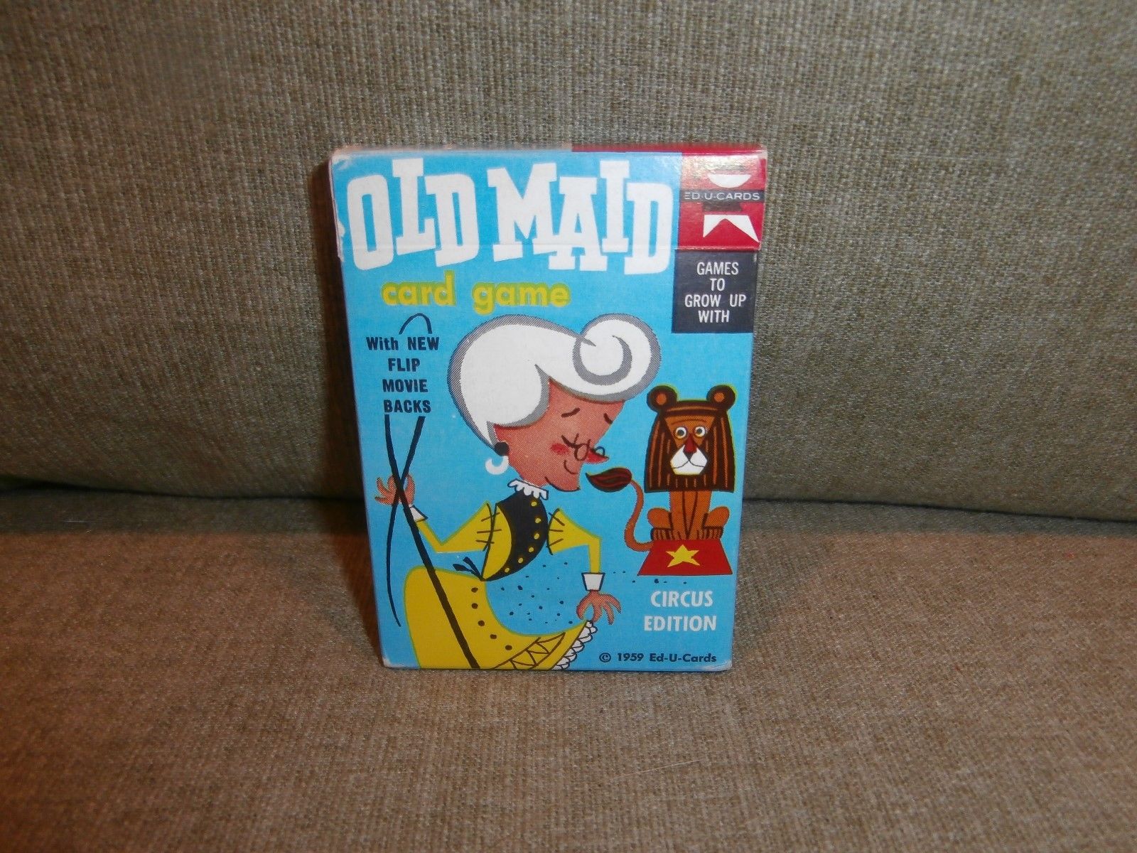 Title (ebay affiliate link): Vintage 1959 Ed-U-Cards Old Maid Card Game Circus Edition Flip-Movie Backs