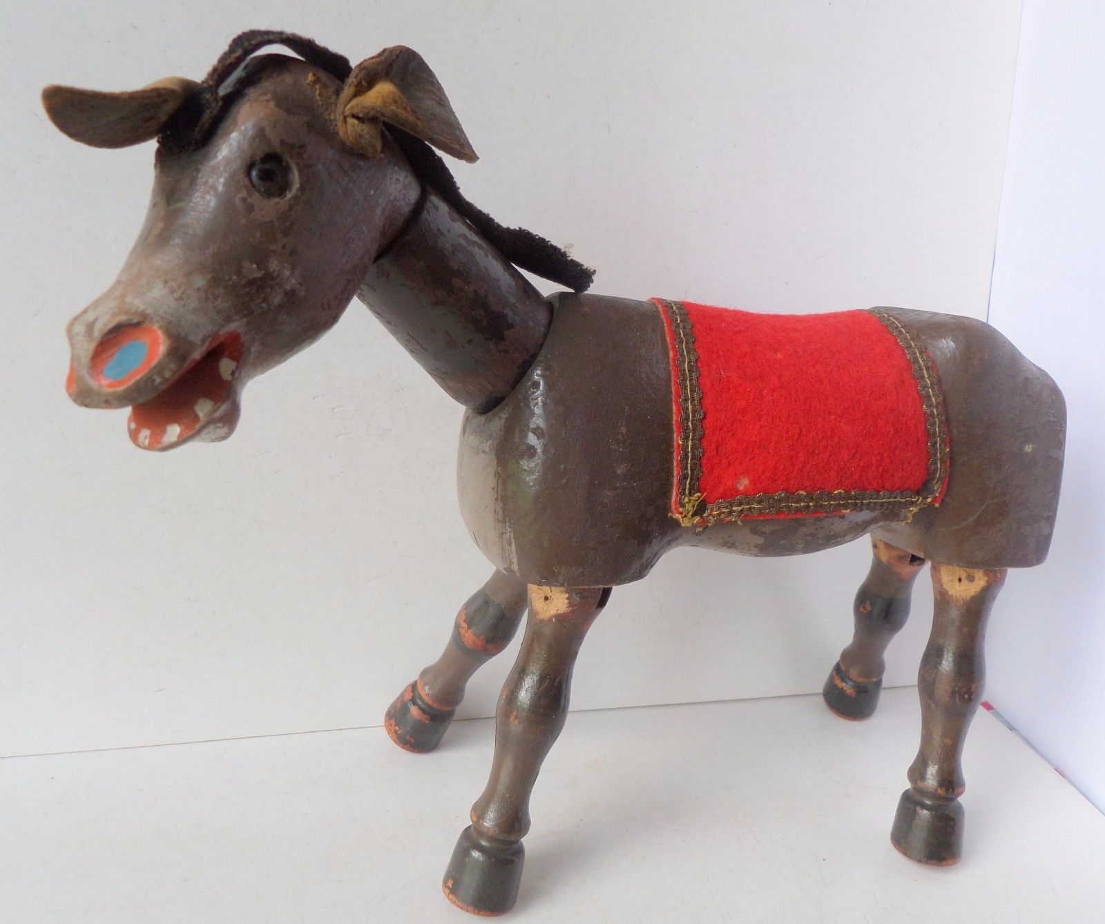 ANTIQUE SCHOENHUT HUMPTY DUMPTY CIRCUS GLASS EYE FULLY JOINTED DONKEY/ASS/MULE
