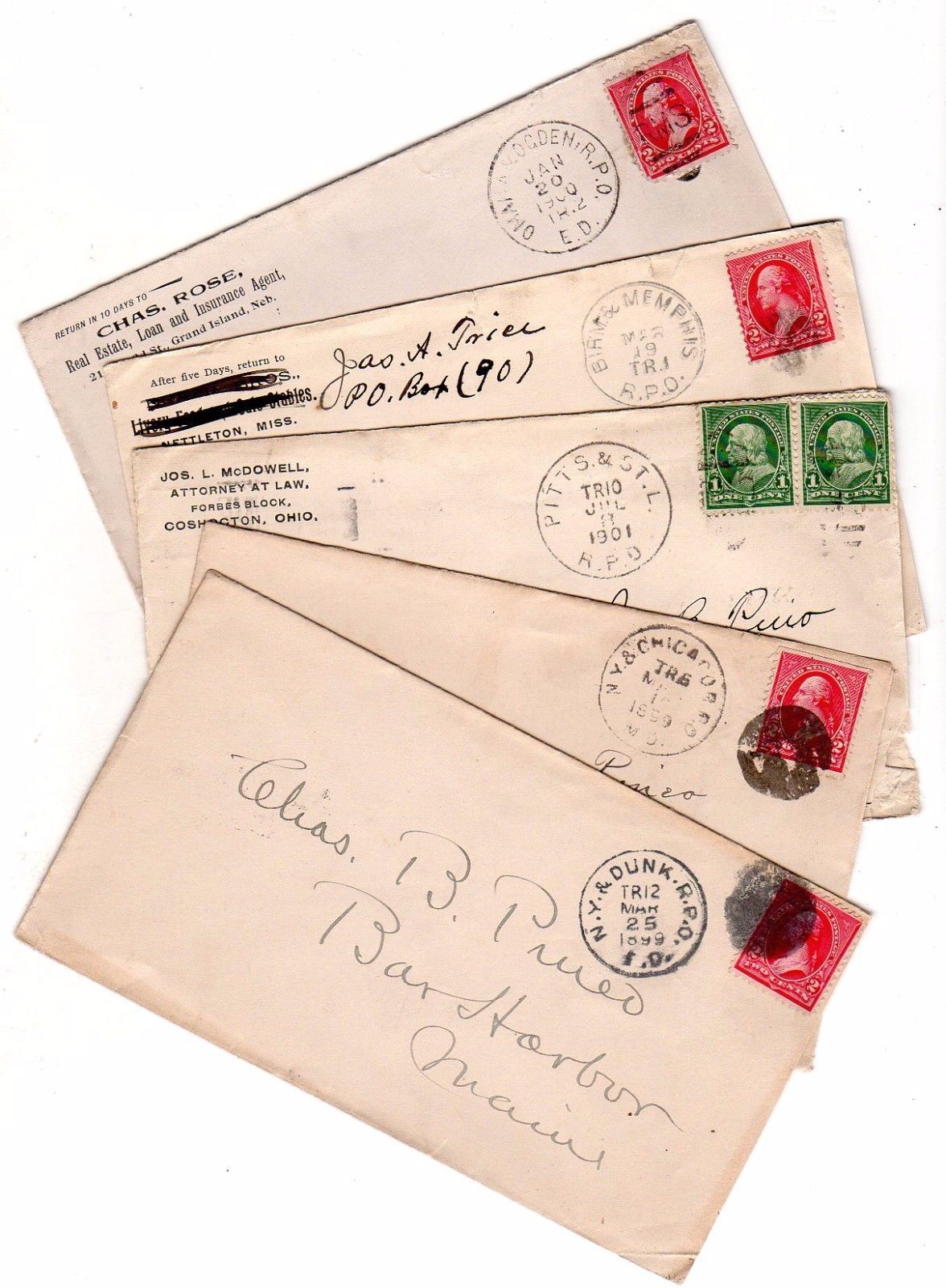 5 Early RPO Covers 1899-1901 NY & Dunk, Pitts & St Louis, MN, NE, OH, MS,