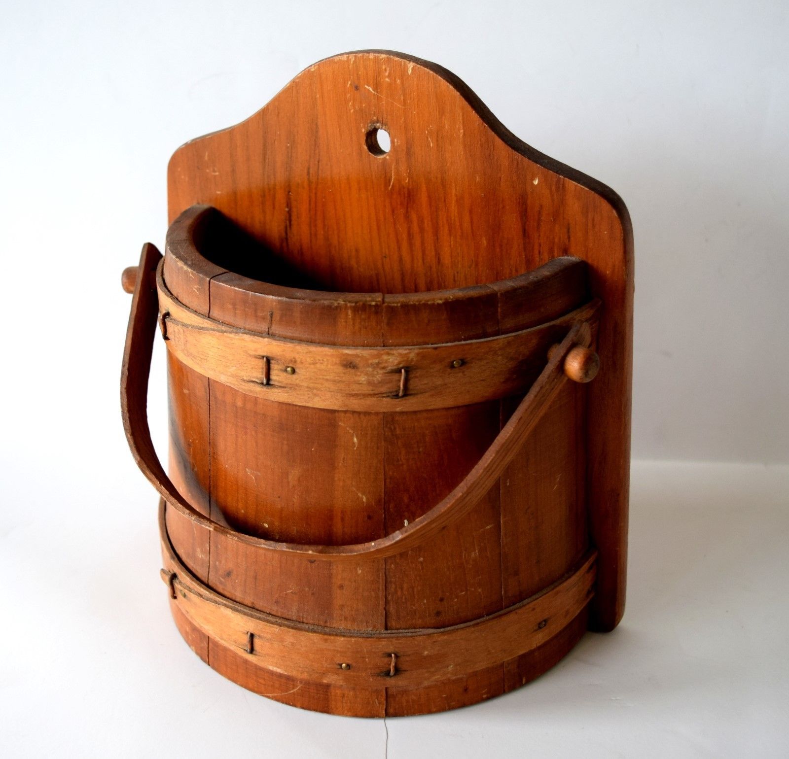 Title (ebay affiliate link): Antique Primitive Vintage Wall Wooden Half Bucket Farm House Decor