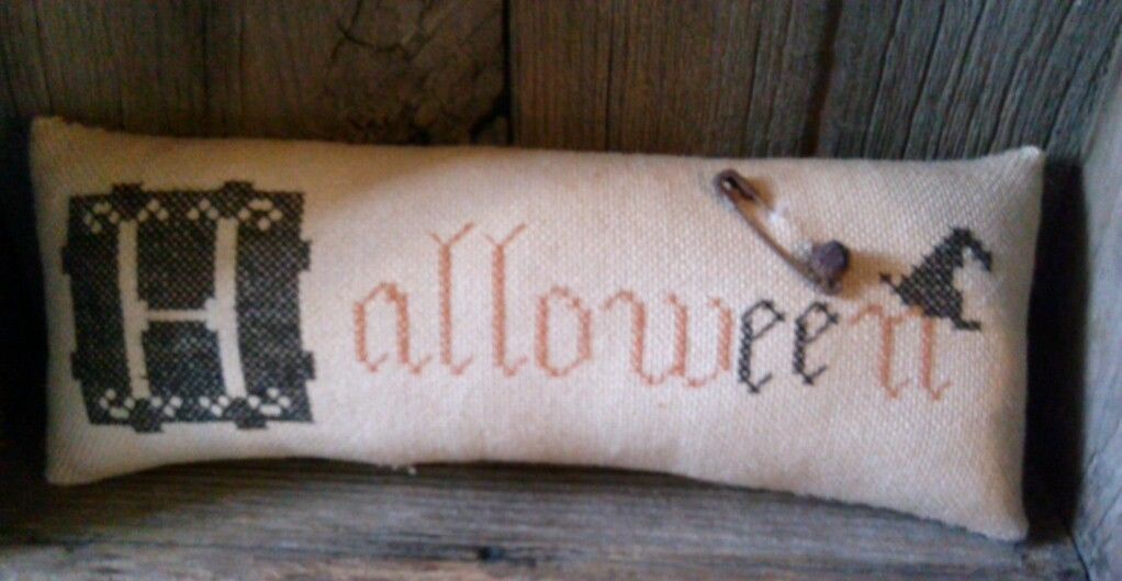 Title (ebay affiliate link): Primitive Handmade Fall Autumn Halloween Cross Stitched Pinkeep Cupboard Tuck