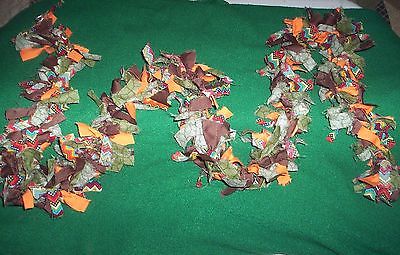 PRIMITIVE COUNTRY HARVEST AUTUMN FALL HAND TIED RAG GARLAND 5 FEET LONG