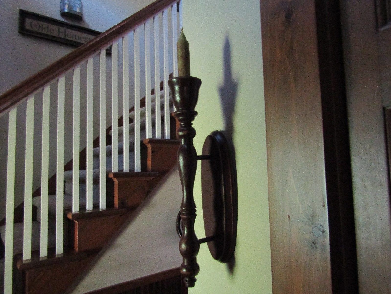 Title (ebay affiliate link): VINTAGE PRIMITIVE PAIR OF TALL WOOD CANDLE SCONCES - NEW ENGLAND RED
