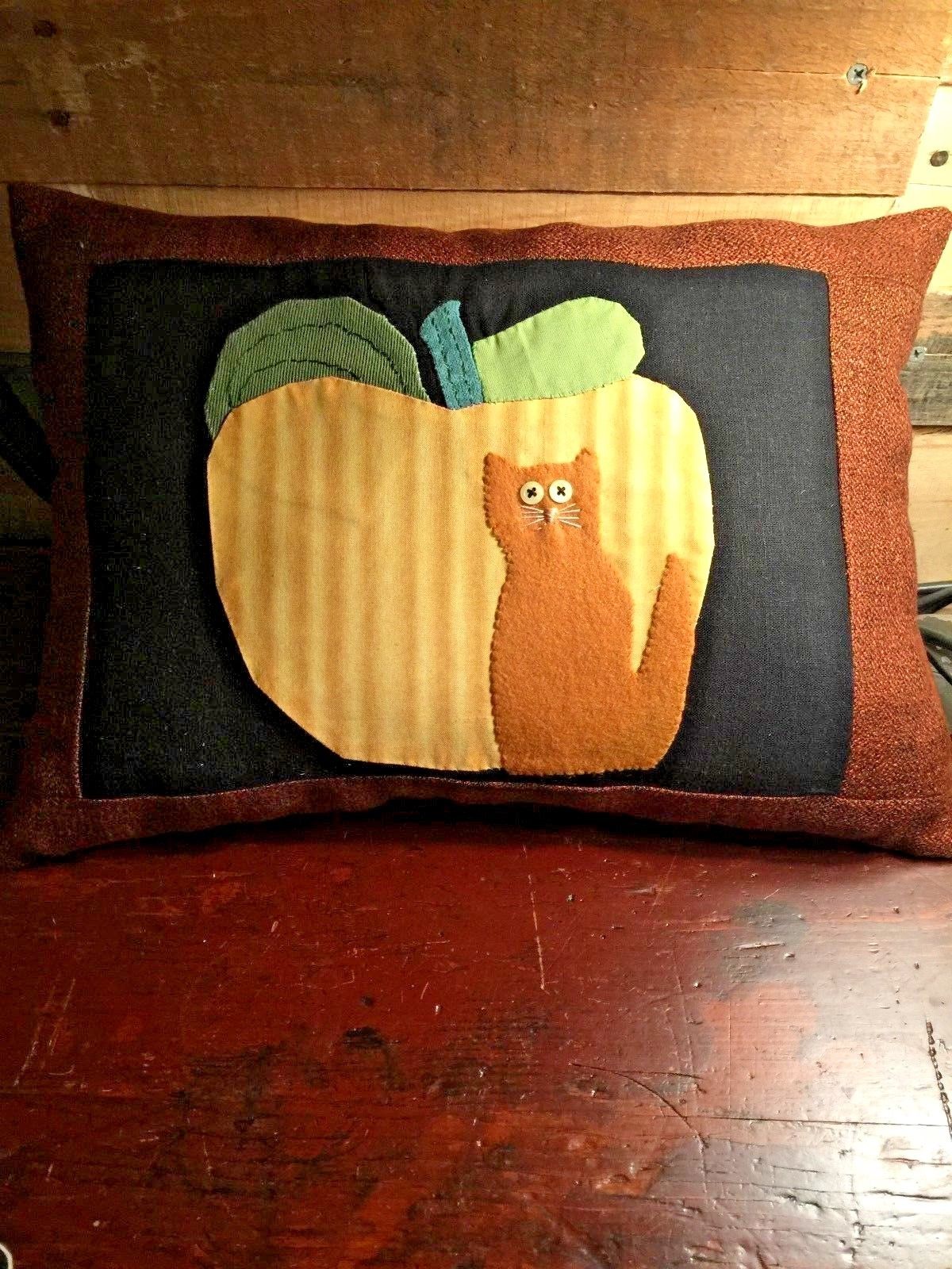 Title (ebay affiliate link): Primitive Stitchery Kitty Cat Halloween Pumpkin Pillow Autumn Decor