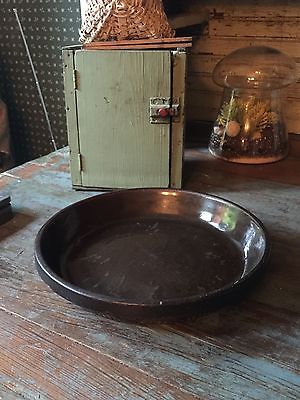 Early Primitive Antique Brown Crock Glaze Stoneware Pottery Pie Dish Bowl