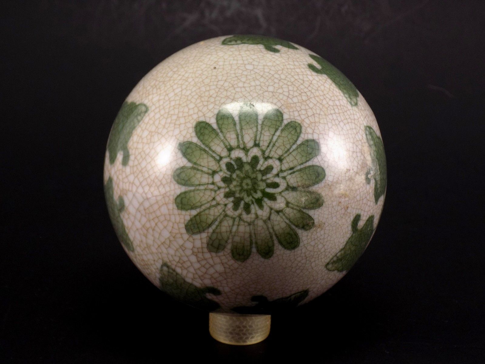 Antique Victorian Green & White Floral Pattern Porcelain Pottery Carpet Ball