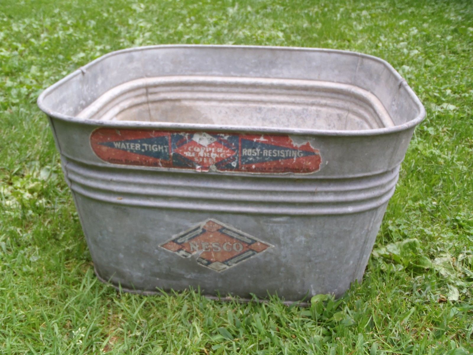 Title (ebay affiliate link): Vintage Galvanized Nesco Square Garden Utility Wash Tub