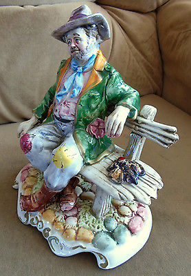 Capodimonte Tramp/Hobo on Bench Figurine (ref 1529)