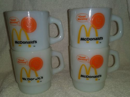 Title (ebay affiliate link): 4 Vintage McDonald''s Good Morning Milk Glass Coffee Mug Anchor Hocking