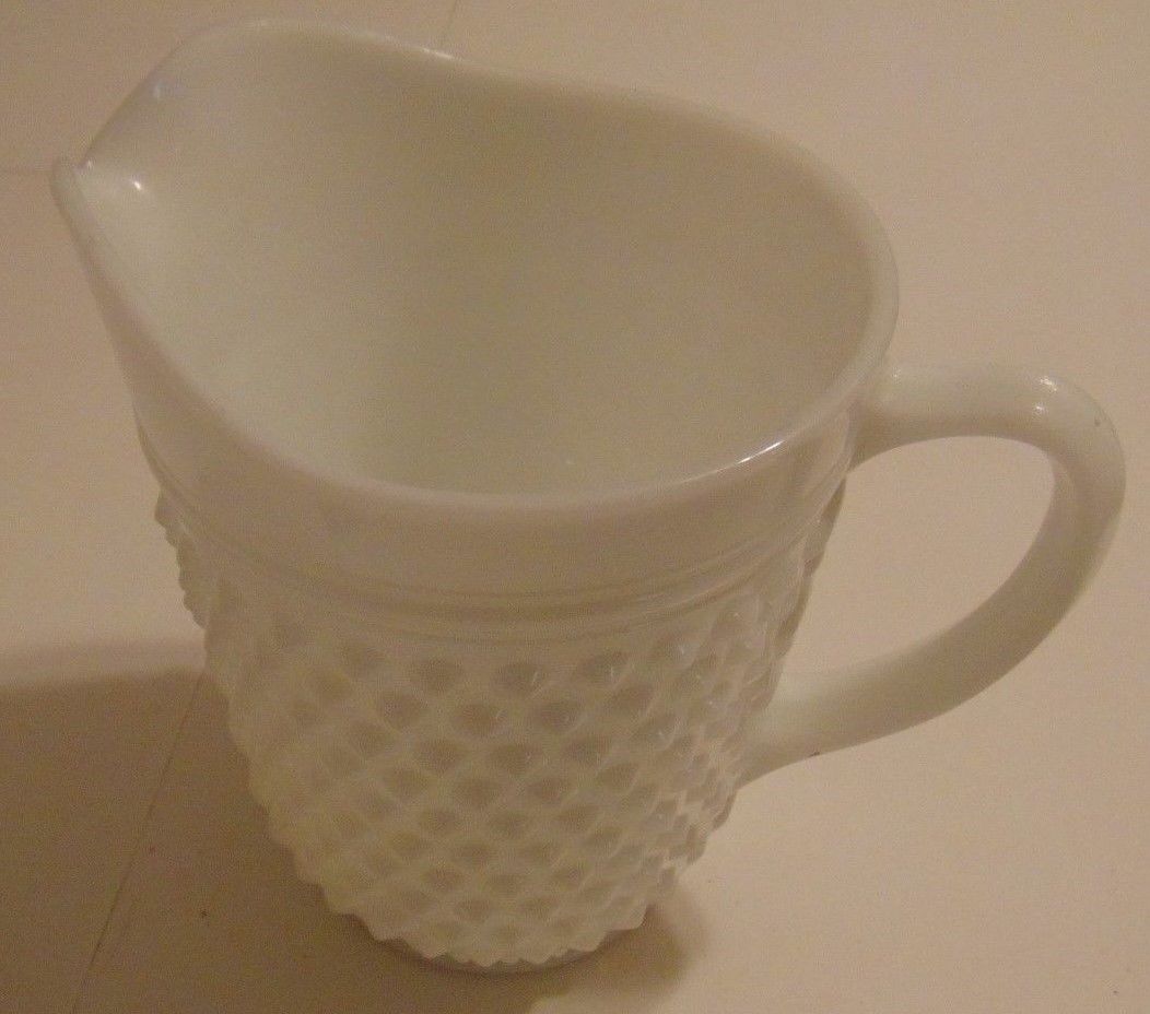 Vintage White Milk Glass Hobnail and Bar Large Pitcher