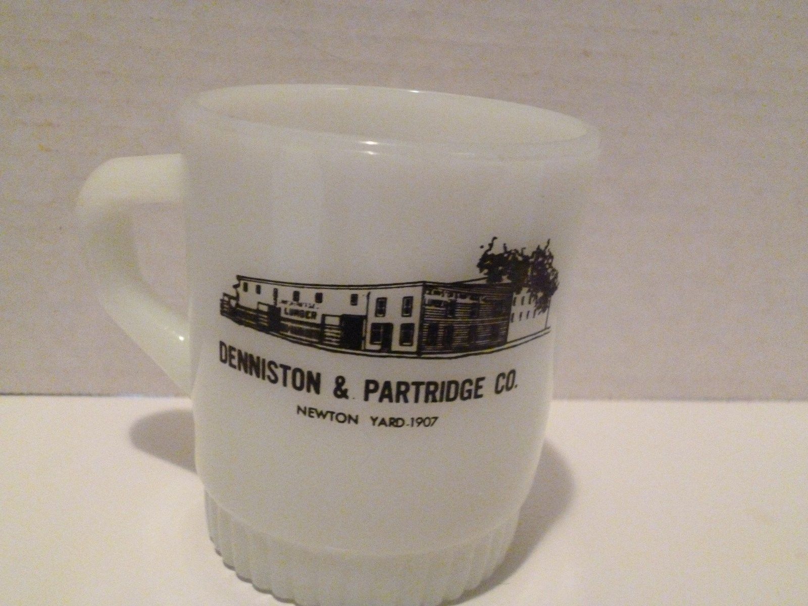 Title (ebay affiliate link): Vintage Fire King Milk Glass Denniston & Partridge Co Newton Coffee Mug