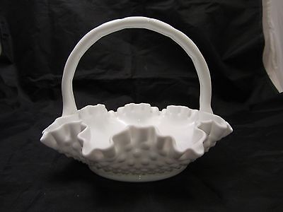Title (ebay affiliate link): FENTON MILK GLASS WHITE HOBNAIL CRIMPED BASKET WITH HANDEL AND STICKER ON BOTTOM