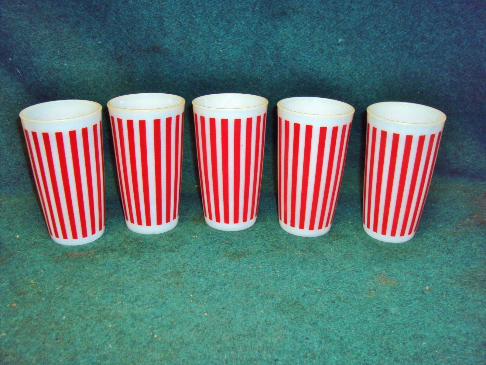 Title (ebay affiliate link): 5 VTG 1950''S HAZEL ATLAS TUMBLERS MILK GLASS RED WHITE CANDY STRIPE EXCELLENT