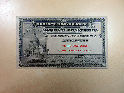 Title (ebay affiliate link): IL. Republican National Convention, 1920 Appointee Admission Card XF-AU Unc.