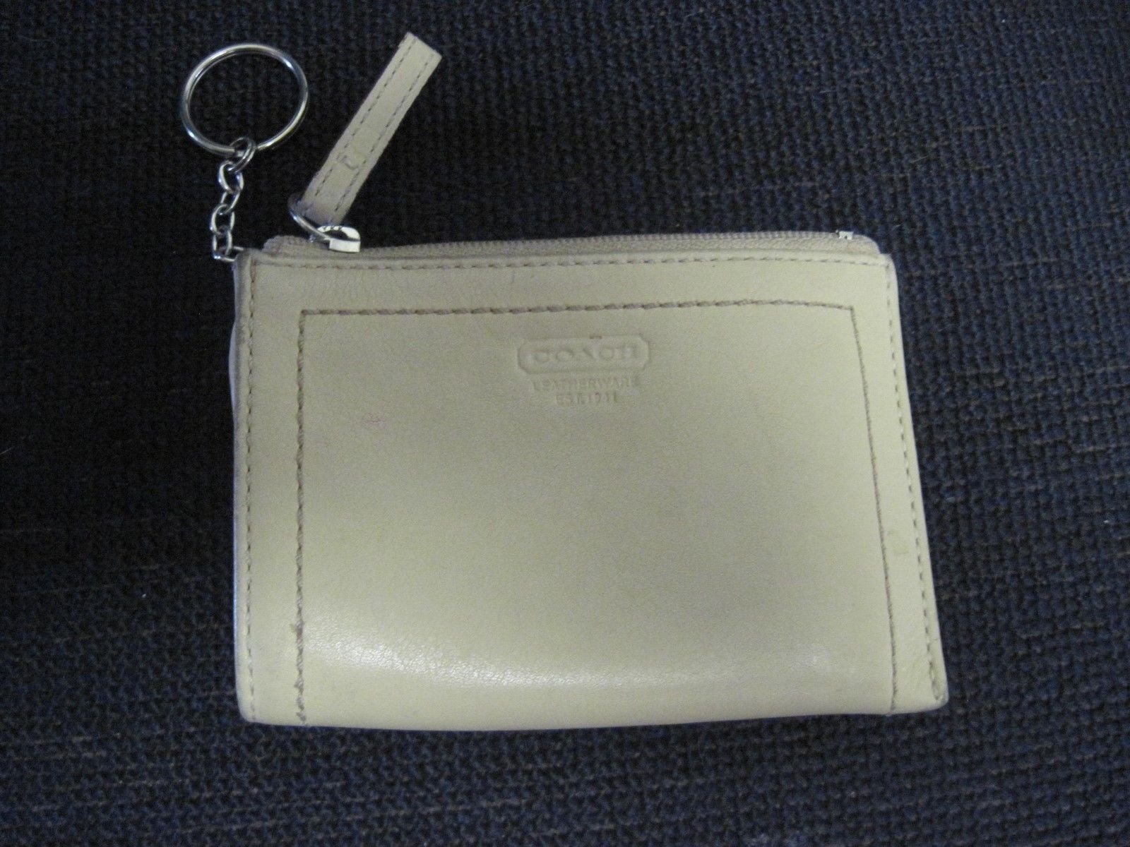 Title (ebay affiliate link): Ivory Beige Vintage Coach Wallet Change Coin Purse w Key Chain zippered leather