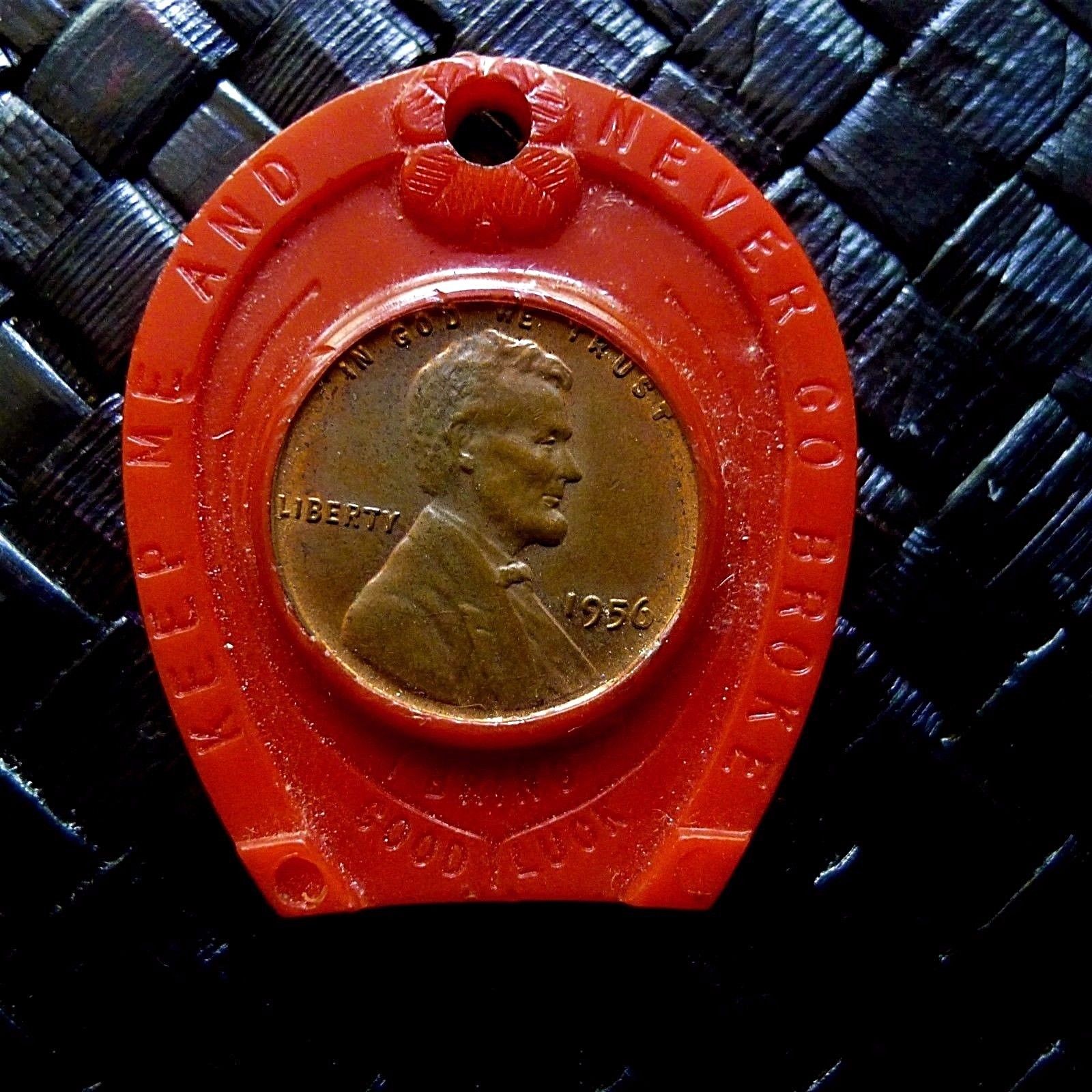 Title (ebay affiliate link): VINTAGE 1956 ENCASED PENNY GOOD LUCK HORSESHOE KEY CHAIN