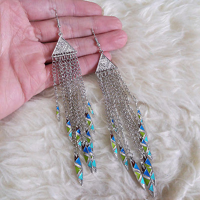 Indiana Stylish Bohemians Hippies Vintage Antique Chains Fringed Hook Earrings